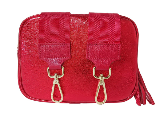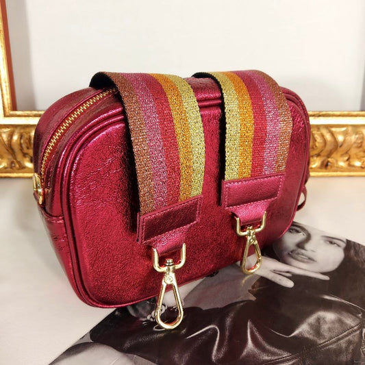 Camera Bag GLOW ROSSA con Tracolla Rosso/Oro/Argento
