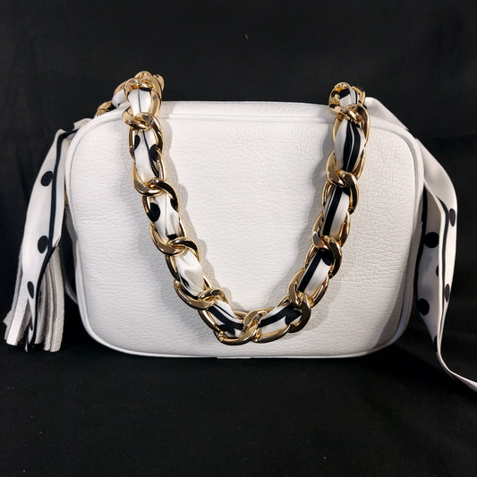 Camera Bag BIANCA con Tracolla a Catenina Foulard Bianca e Nera